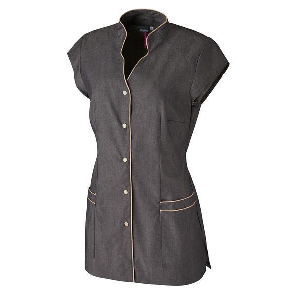 Tunique encolure fantaisie et parementure bordée d’un passepoil